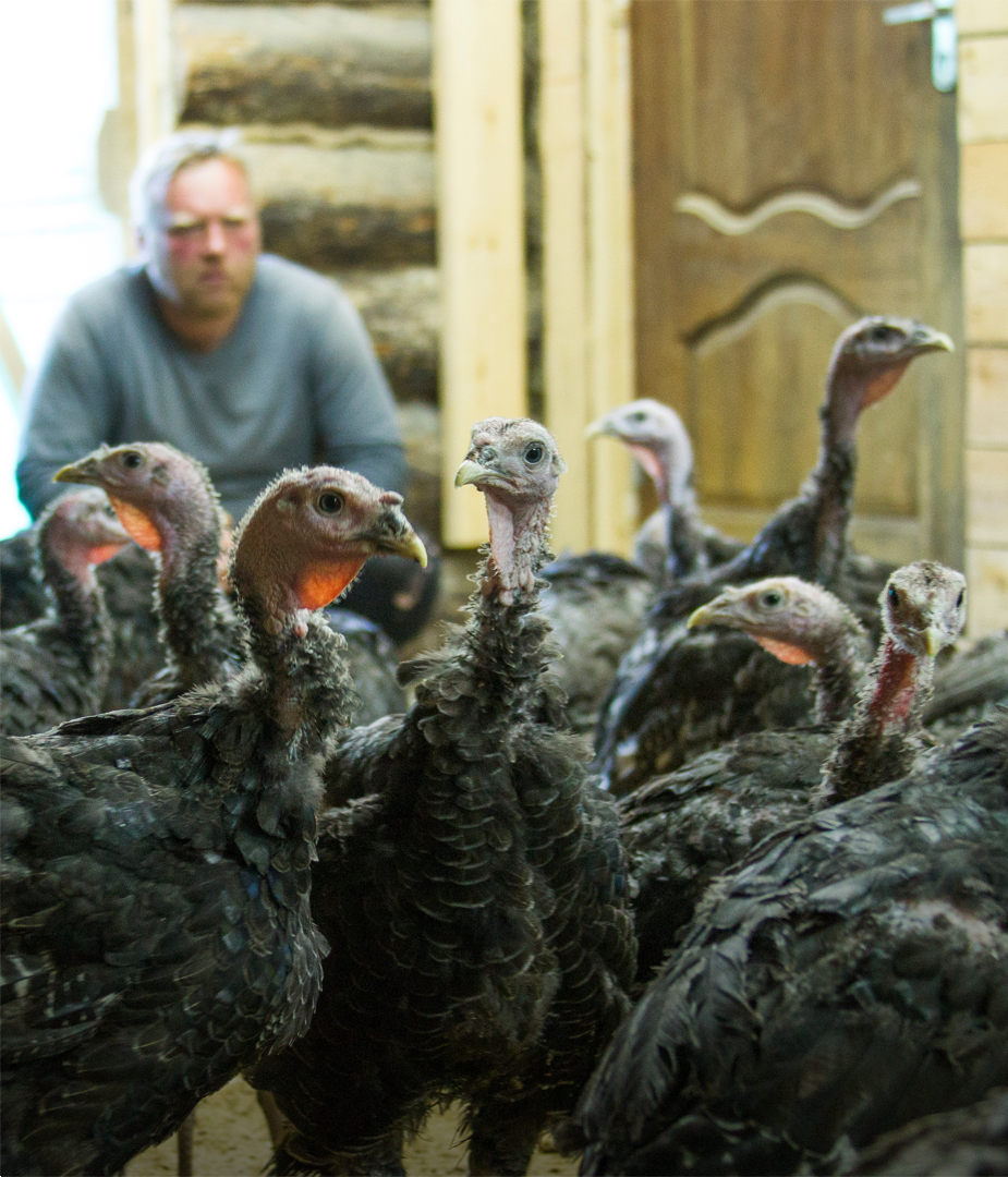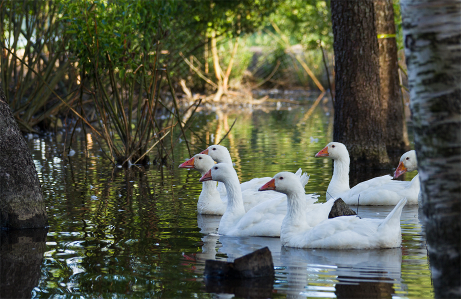 Гуси, утки, куры, кролики, индюки - а также цесарки и овцы - всё открыто для посещения.